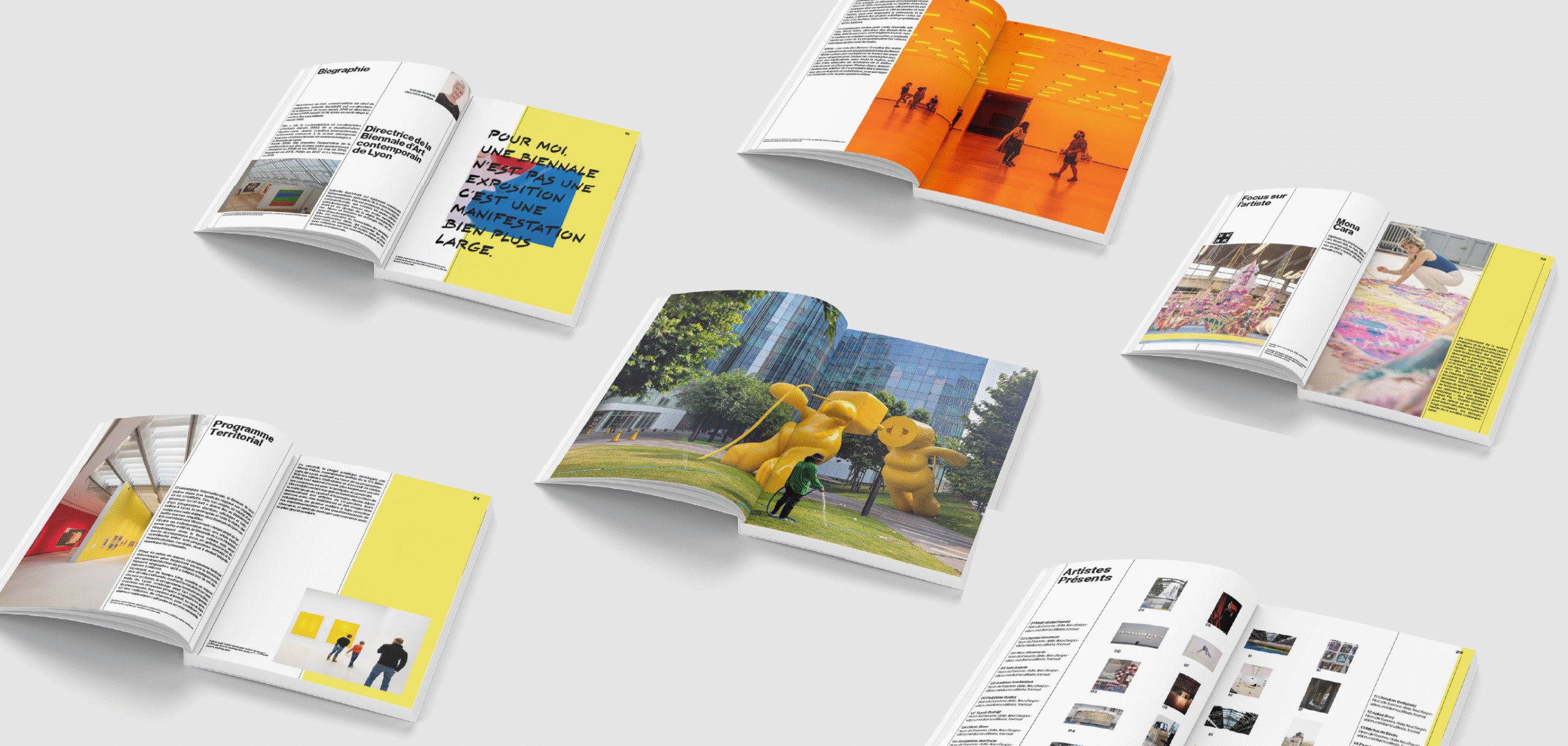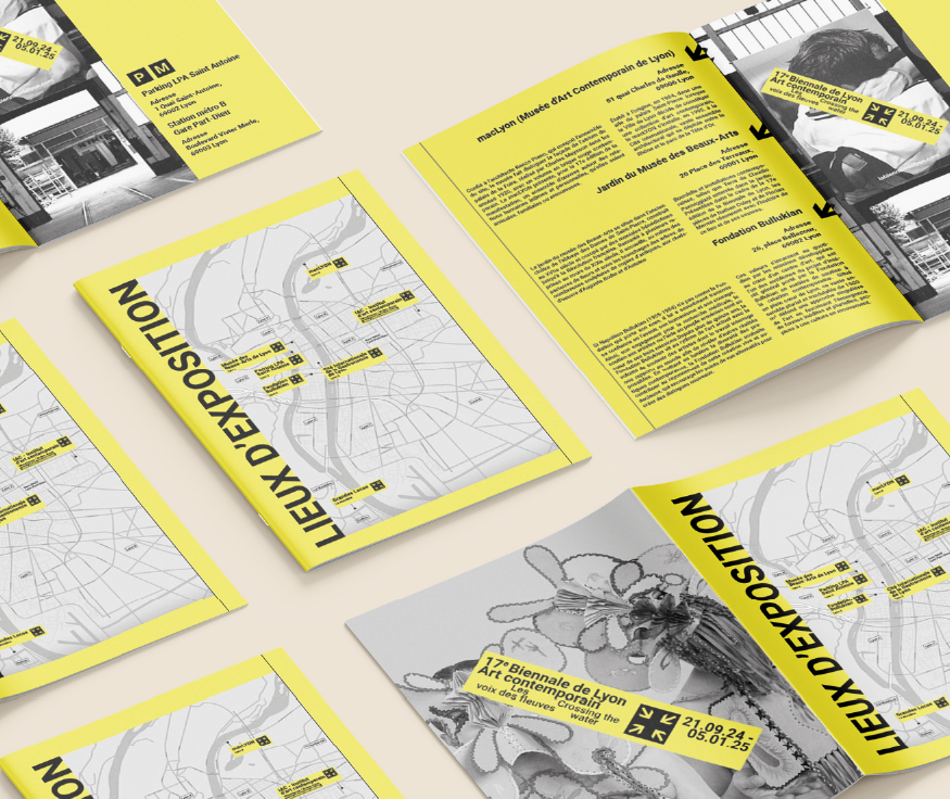 Pour la 17e Biennale d’Art Contemporain de Lyon, un livre exhaustif a été conçu afin de documenter et d’immortaliser l’événement. Le projet a consisté en la mise en page intégrale de l’ouvrage, avec le défi d’appliquer de manière rigoureuse l’identité visuelle existante créée par l’agence ZOO.